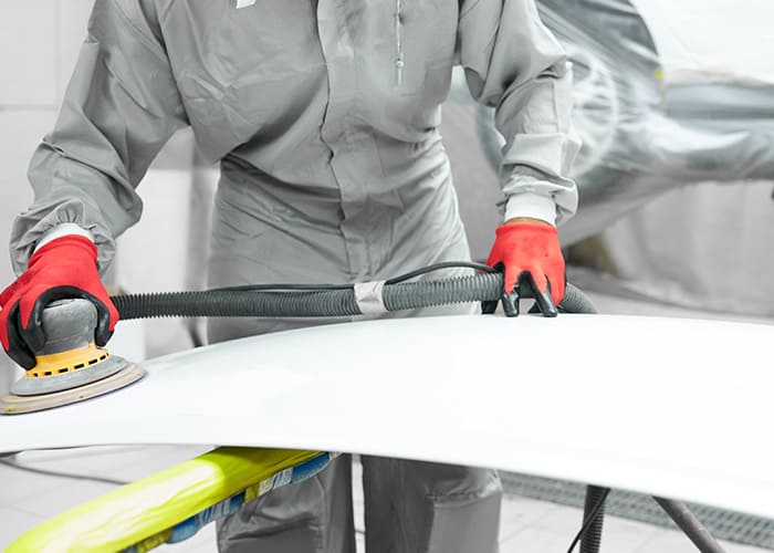 当社は、塵やホコリを完全にシャットアウトする密閉型の最高級塗装ブースを完備。塗装ウエアを着用し、最高級の仕上がりを追求しています。